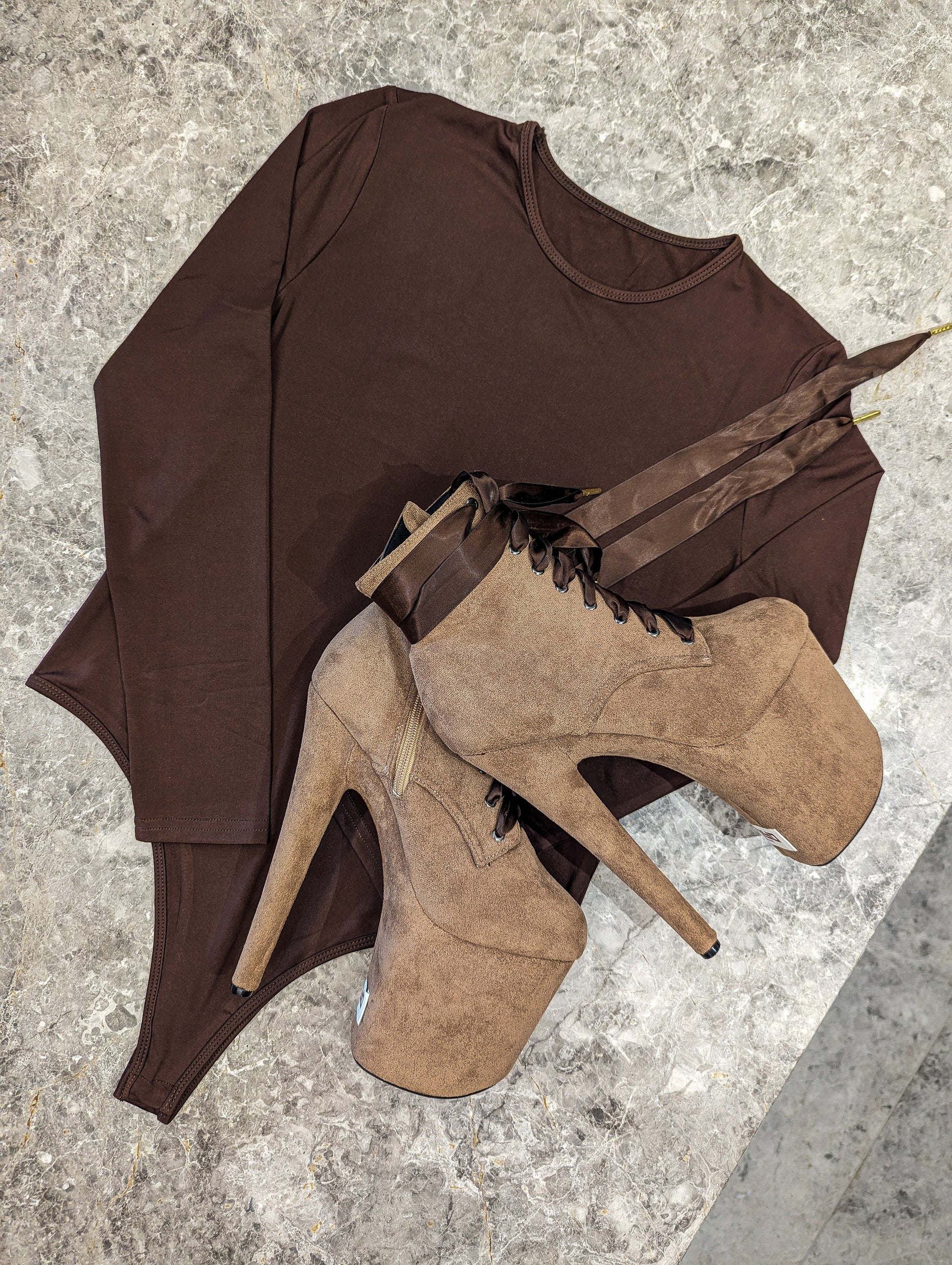 The Hotter Chocolate Bundle brings you everything you need to step up your game — featuring our iconic OG 8-inch ankle boots paired perfectly with a matching bodysuit. This coordinated set is designed to elongate your body, sharpen your lines, and make sure all eyes stay exactly where they should — on you.