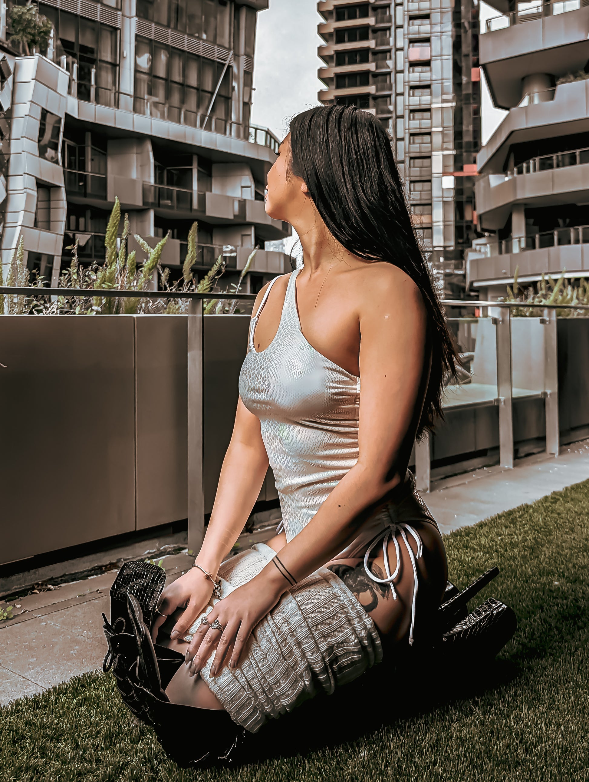 Turn every entrance into a statement with the Saint Bodysuit in Pearl. Designed for fierce confidence, this sleek white piece features a subtle snakeskin shimmer that catches the light in all the right places.